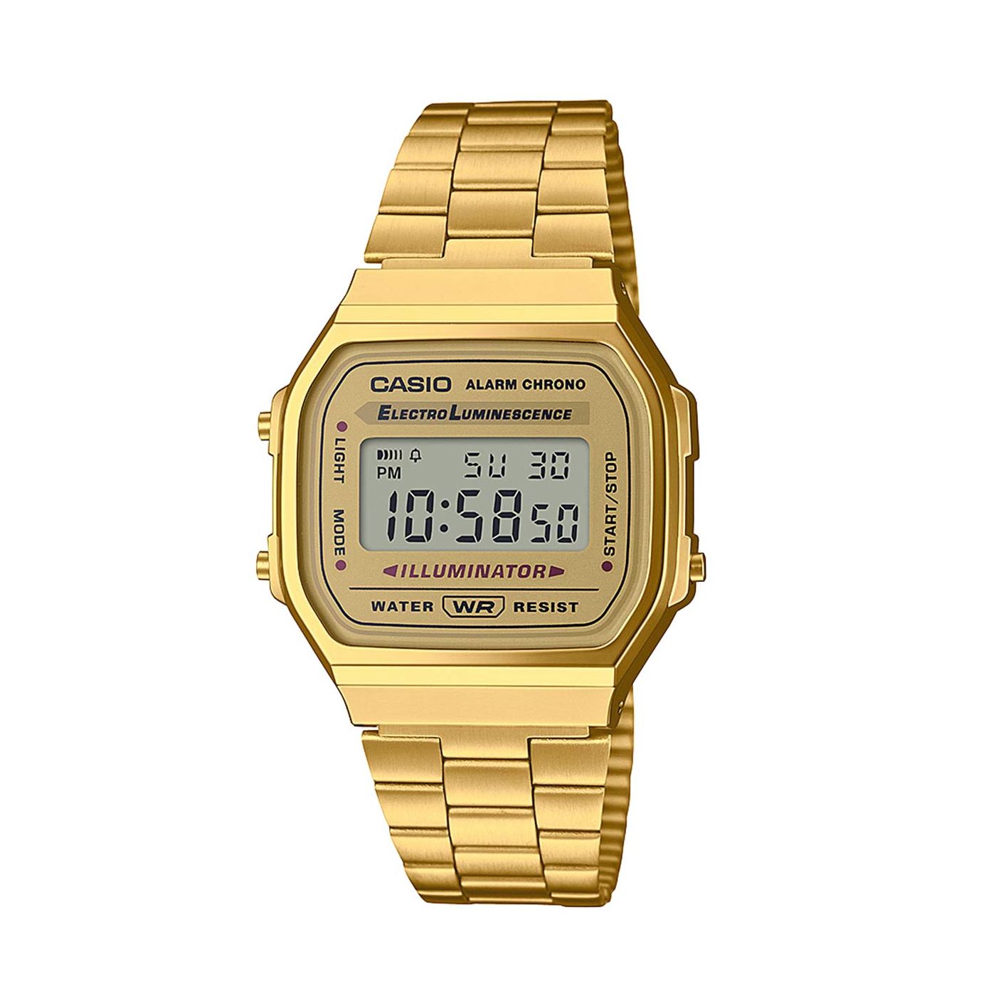 Elevate your everyday style with the Casio A168WG-9EF. This eye-catching digital watch reimagines the iconic Casio design with a luxurious gold-tone finish. The sleek stainless steel band and rectangular case create a sophisticated look that effortlessly complements any outfit.