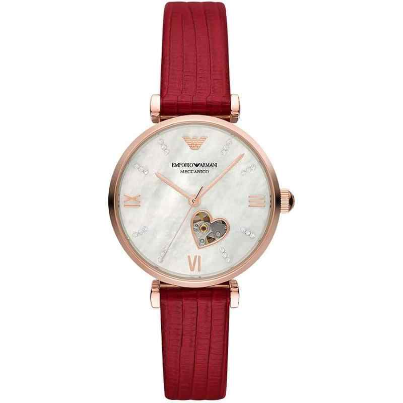 Elevate your style with this sophisticated Emporio Armani AR60048 women’s automatic watch. Featuring a luxurious mother-of-pearl (MOP) dial encased in polished stainless steel, this timepiece exudes timeless elegance. The rich red leather strap complements the 34mm case perfectly, creating a watch that’s both eye-catching and refined. Driven by a precise automatic movement, this watch ensures accurate timekeeping, while the classic three-hand design maintains a clean and minimalist aesthetic. Perfect for everyday wear or special occasions, the Emporio Armani AR60048 is a testament to quality craftsmanship and sophisticated design.