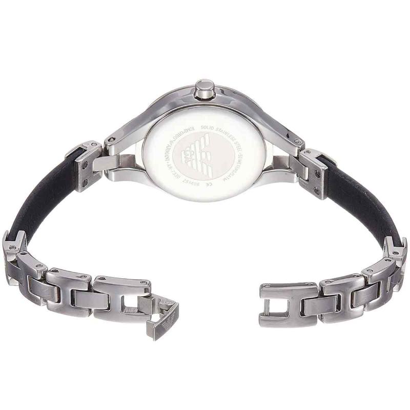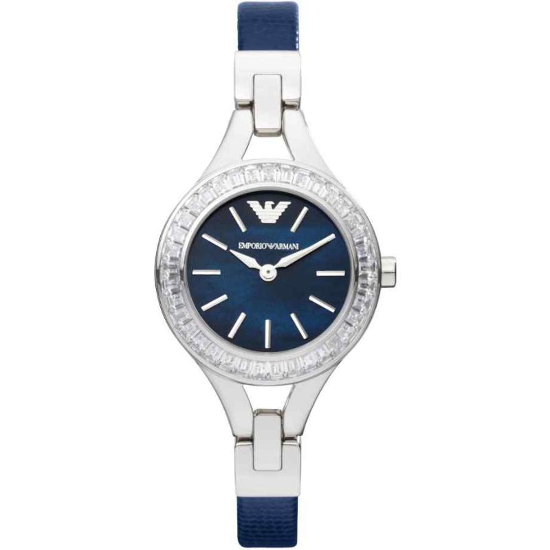 The Emporio Armani AR7330 is a refined and highly versatile ladies’ timepiece. This 32mm watch is crafted entirely from polished stainless steel, providing a seamless, sophisticated look across the case and integrated bracelet. The fixed bezel frames a crisp blue dial that maintains a simple two-hand display with minimalist stick indices. Powered by a reliable quartz movement and water-resistant to 30 meters, the AR7330 is an essential accessory perfect for blending seamlessly with fine jewelry and complementing any sophisticated attire.