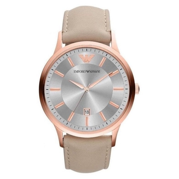 Strap: 22mm wide nude beige leather strap with stainless steel pin buckle