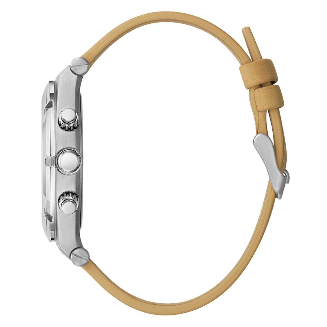 The Guess Continental GW0262G1 is a versatile and functional men’s timepiece with a refined style. This large 44mm watch features a polished stainless steel case and a legible black dial that provides chronograph-look multifunctionality, including day, date, and 24-hour time. The contrast is completed by a comfortable and classic brown genuine leather strap with contrast stitching. Powered by a reliable quartz multifunction movement and water-resistant to 50 meters, this watch is an excellent, sophisticated choice for both business and smart-casual wear.