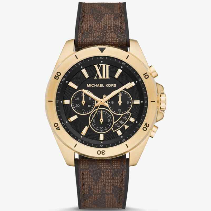 -60%Elevate your style with this sophisticated Michael Kors Brecken Chronograph watch. Featuring a striking black dial housed in a durable 45mm PVC case, this timepiece exudes modern masculinity. The multi-coloured brown leather strap adds a touch of unique character and ensures comfortable all-day wear. Powered by a precise quartz movement, the chronograph function offers advanced timekeeping capabilities. With its blend of functionality and refined design, the Michael Kors Brecken Chronograph is the perfect accessory for the modern man.