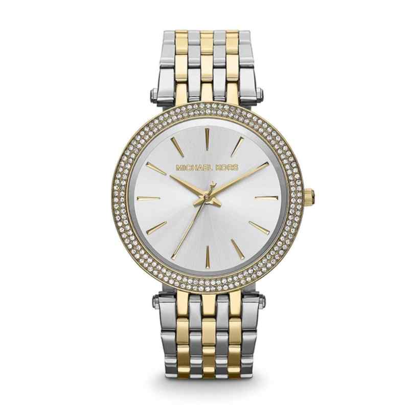 -60%Elevate your everyday style with the Michael Kors Darci MK3215 women’s watch. This sophisticated timepiece features a classic three-hand analog display on a shimmering silver dial. The durable stainless steel case measures 39mm and is beautifully complemented by a polished two-tone stainless steel bracelet, creating a truly timeless look. Powered by a precise quartz movement, this watch ensures accurate timekeeping. With its elegant design and quality craftsmanship, the Michael Kors Darci MK3215 is the perfect accessory for any occasion.