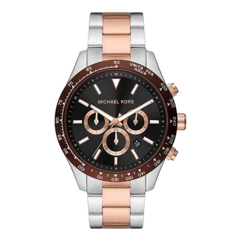 Two-tone stainless steel bracelet provides a polished and versatile look.