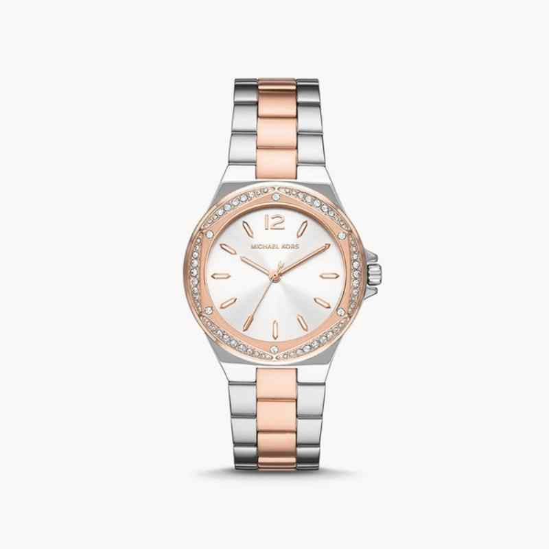 -60%Elevate your everyday style with this sophisticated Michael Kors Lennox watch. Featuring a classic three-hand design, this timepiece boasts a shimmering white dial set within a 37mm two-tone stainless steel case. The complementary two-tone stainless steel bracelet adds a touch of elegance and secures comfortably on the wrist. Powered by a precise quartz movement, this watch ensures accurate timekeeping. Perfect for any occasion, the Michael Kors Lennox watch is a beautiful blend of style and functionality.