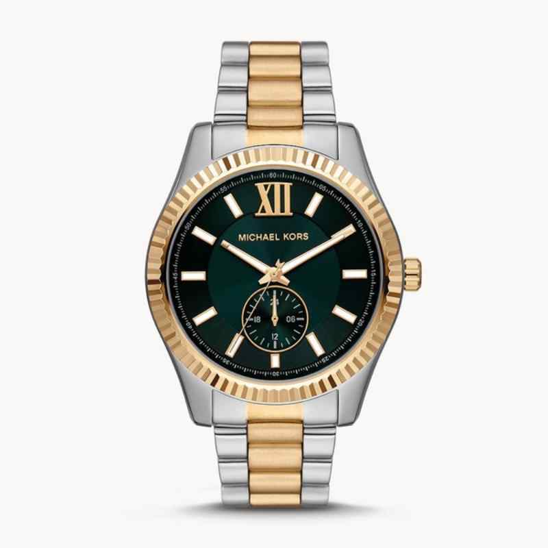 -60%Elevate your style with this sophisticated Michael Kors Lexington multifunction watch. Featuring a vibrant green dial encased in a durable 45mm stainless steel case, this timepiece offers a striking two-tone design. The watch boasts a precise quartz movement and a classic 3-hand configuration for accurate timekeeping. The two-tone stainless steel bracelet complements the case perfectly, creating a seamless and polished look. Perfect for everyday wear or special occasions, this Michael Kors watch is a testament to quality craftsmanship and timeless design.
