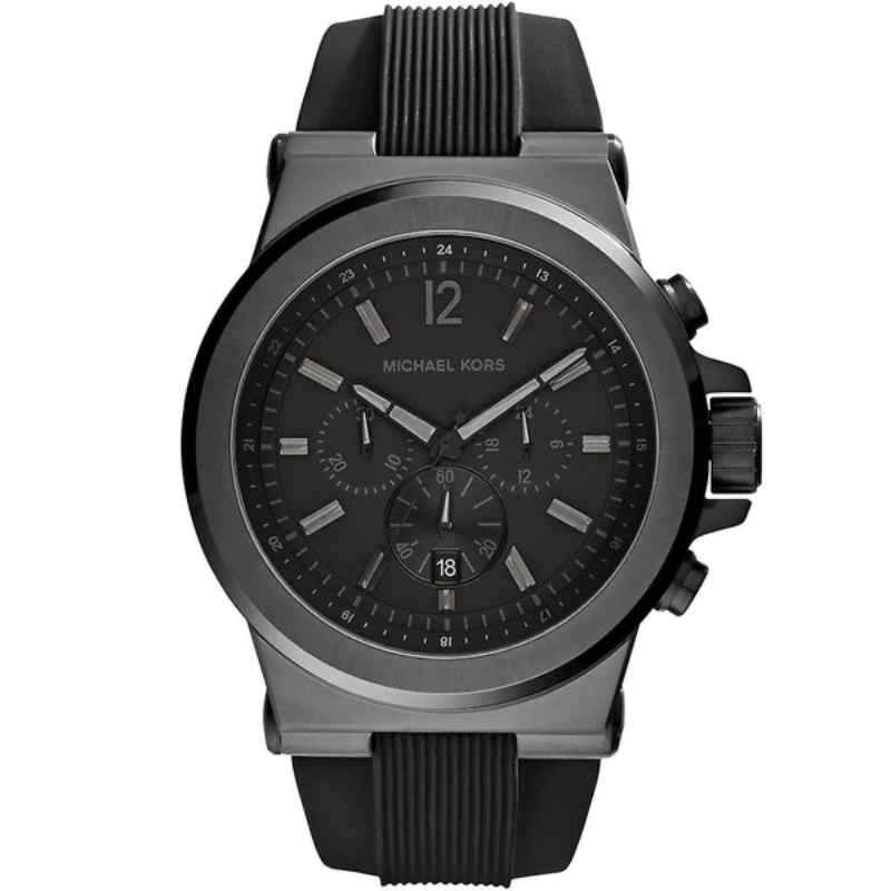 Strap Material: Black Rubber with Black PVD Plated Stainless Steel Pin Buckle