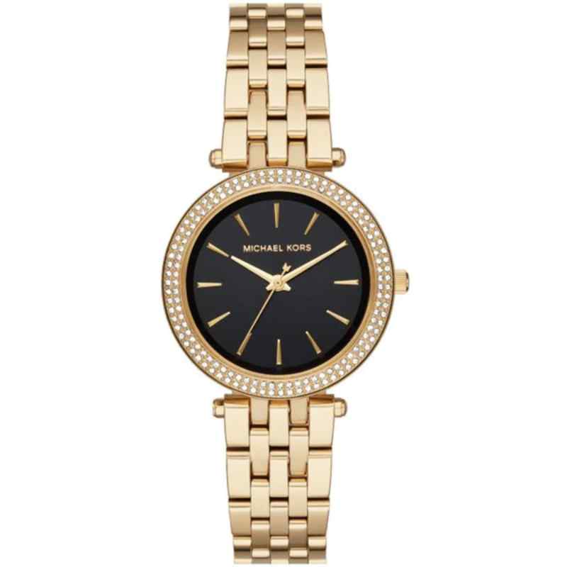Bracelet Material: Gold-tone stainless steel with push-button folding clasp