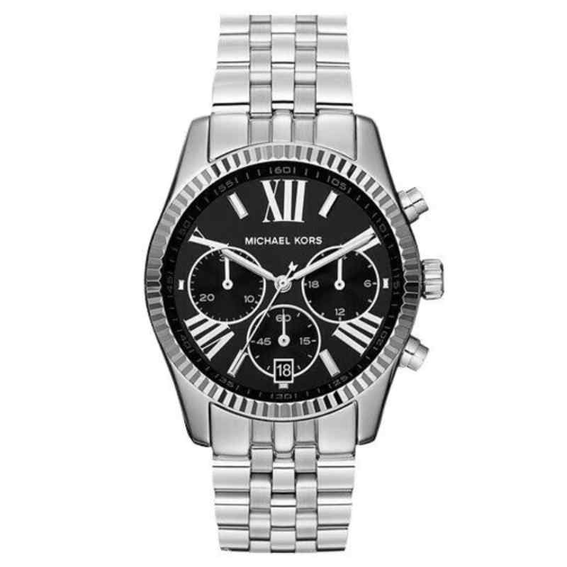 -60%Make a statement with this stylish Michael Kors MK5708 chronograph watch. Featuring a sleek silver-tone stainless steel case and bracelet, this versatile timepiece complements any outfit. The bold black dial houses chronograph sub-dials for precise timekeeping, while the durable mineral crystal protects against scratches. Perfect for both men and women, this watch offers a sophisticated blend of function and fashion.