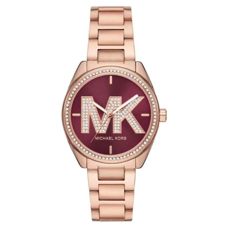 Enjoy luxury with the Michael Kors Janelle watch. The rose gold tone and burgundy dial create a sophisticated and exclusive look. Precisely crafted, this watch is perfect for the modern and stylish woman. Elevate your style with the Janelle watch. Watch details: – Case size: 36 mm – Case water resistance: 5 ATM – Case material: Stainless steel – Case colour: Rose gold – Clasp: Push-button folding – Dial colour: Bordeaux – Movement: Quartz – Strap material: Stainless steel – Strap colour: Rose gold – Band width: 18 mm