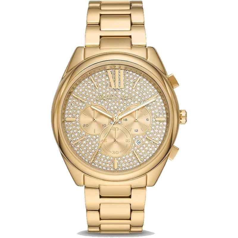 -60%Michael Kors’ 45mm Langford watch features a gold pavé dial, chronograph movement and gold-tone stainless steel bracelet.