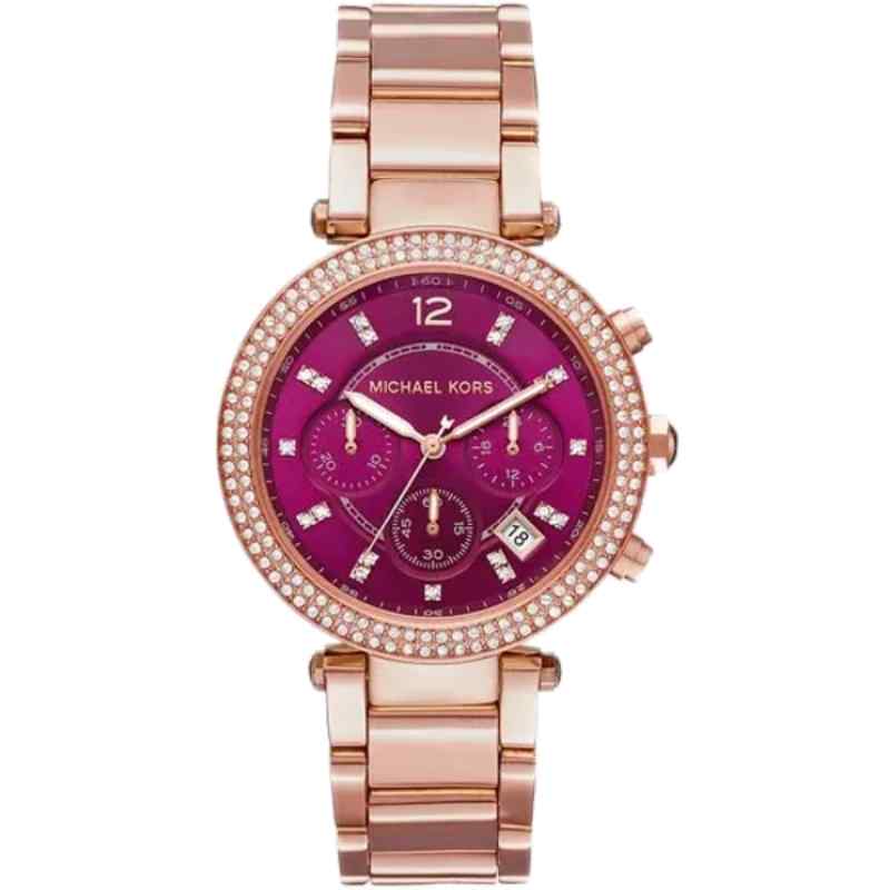 Michael Kors Parker MK6417 Chronograph Watch Rose Gold Tone Bracelet & Fuchsia Dial