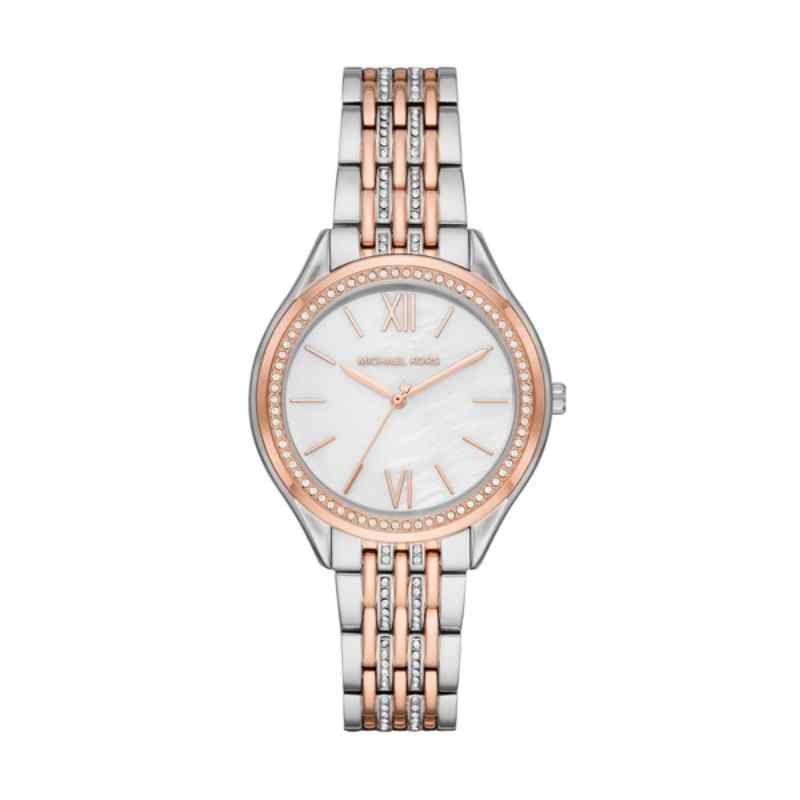 -60%Elevate your everyday style with this sophisticated Michael Kors Parker MK7077 watch. Featuring a luminous white mother-of-pearl dial encased in a 36mm gold-plated stainless steel case, this timepiece exudes timeless elegance. The two-tone gold-plated stainless steel bracelet adds a touch of modern glamour, while the reliable quartz movement ensures accurate timekeeping. Perfect for both everyday wear and special occasions, this watch is a testament to Michael Kors’ commitment to quality craftsmanship and refined design.