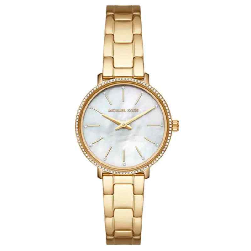 Michael Kors Women's MK4619 Gold Plated Analog Watch Classic White Dial