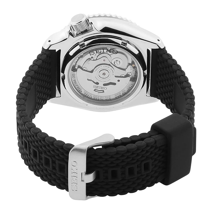 At its core, the watch is powered by a dependable automatic movement, a testament to traditional watchmaking that operates with the natural motion of your wrist, eliminating the need for batteries. The robust stainless steel case provides sturdy protection, while the comfortable and durable black rubber strap (often with a textured, “waffle” or “tire tread” pattern) ensures a secure and practical fit, making it ideal for active lifestyles. Complete with a convenient day/date display and LumiBrite for superior visibility in low-light conditions, the Seiko 5 Sports SRPD73K2 is more than just a watch; it’s a versatile companion built for enduring performance and unmistakable style. Elevate your collection with this exceptional timepiece from easy-watches.com.
